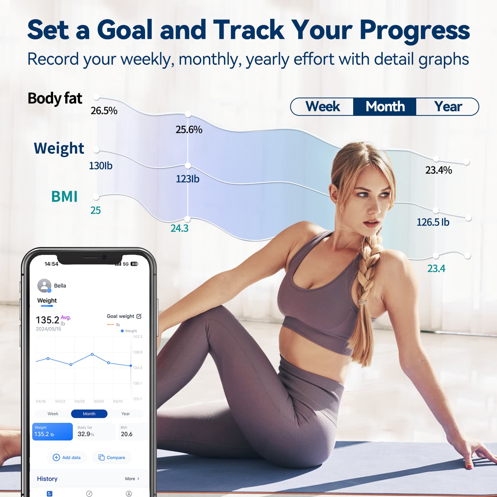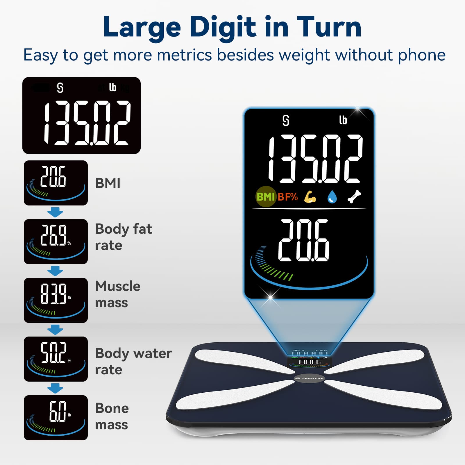 - 3.57 inch Color VA Screen Large Display Bathroom Scale 400 lb x 0.1lb Lepulse F3